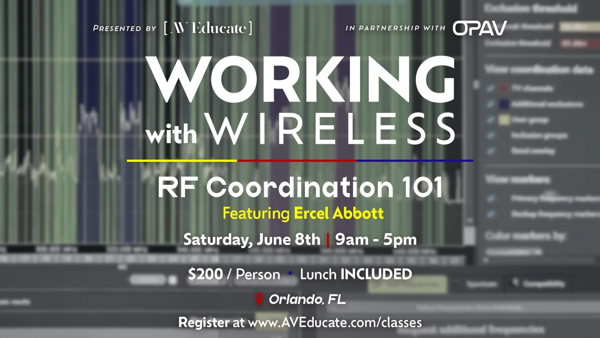 In this one-day only, hands-on, RF coordination class, AV Educate partners up with Instructor Ercel Abbott and OPAV to equip beginner to intermediate level students with the fundamentals in coordinating wireless frequencies, from mics to comms, for corporate and live events!
